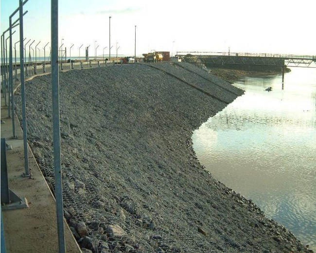 綠濱墊是指金屬網(wǎng)面構(gòu)成的厚度遠(yuǎn)小于長度和寬度的墊形工程構(gòu)件,其中裝入塊石等填充料后連接成一體,成為主要用于水利堤防、岸坡、海曼等的防沖刷結(jié)構(gòu),具有柔性、對地基適應(yīng)性的優(yōu)點。綠濱墊是厚度在0.17-0.3m(含0.3m)的網(wǎng)墊結(jié)構(gòu)。主要用作河道、岸坡、路基邊坡護(hù)坡結(jié)構(gòu)。既可防止河岸遭水流、風(fēng)浪侵襲而破壞,又實現(xiàn)了水體與坡下土體間的自然對流交換功能,達(dá)到生態(tài)平衡。坡上植綠可增添景觀、綠化效果。
