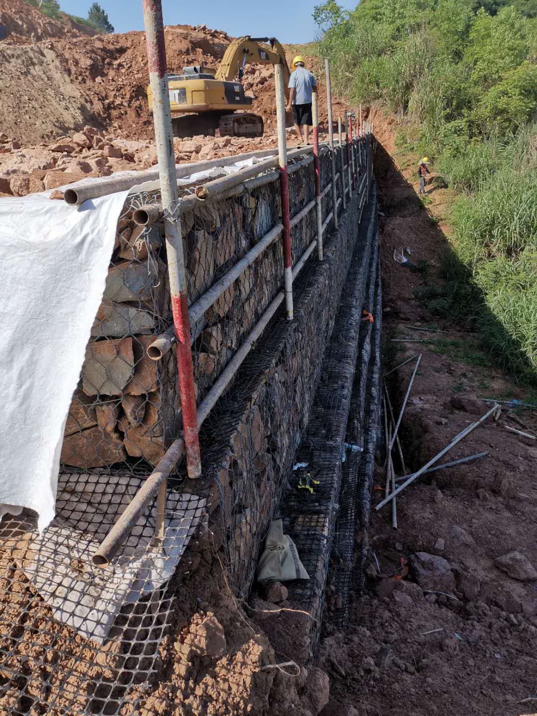 石籠網(wǎng)箱擋土墻技術以抗腐耐磨的低碳鍍鋅絲或鍍鋅鋁合金絲網(wǎng)箱、網(wǎng)墊為主休,為一柔性結構,能適應各種土層性質并與之較好的結合,能很好的適應地基變形,不會削弱整休結構,更不易斷裂破壞。