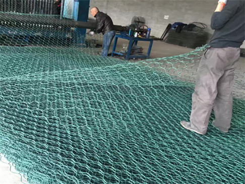 石籠網(wǎng)是金屬線材編織的角形網(wǎng)(六角網(wǎng))制成的網(wǎng)箱,使用的金屬線徑是根據(jù)六角形的大小而不同。如果是金屬鍍層的金屬線六角形,則使用線徑為2.0mm到4.0mm的金屬線,如果是PVC包覆的金屬線編織的六角網(wǎng),則使用外徑為3.0mm到4.0mm的PVC(金屬)線.外框邊緣的線則使用比六角網(wǎng)線粗一號的線。