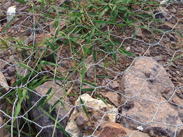 (一)格賓及雷諾護墊均是由特殊防腐處理的低碳鋼絲經(jīng)機器編織成的六邊形雙絞合鋼絲網(wǎng),在工廠做成符合工程要求的網(wǎng)箱結(jié)構(gòu),在施工現(xiàn)場用石料填充,其結(jié)構(gòu)具有柔性、透水性及整體性等特點。