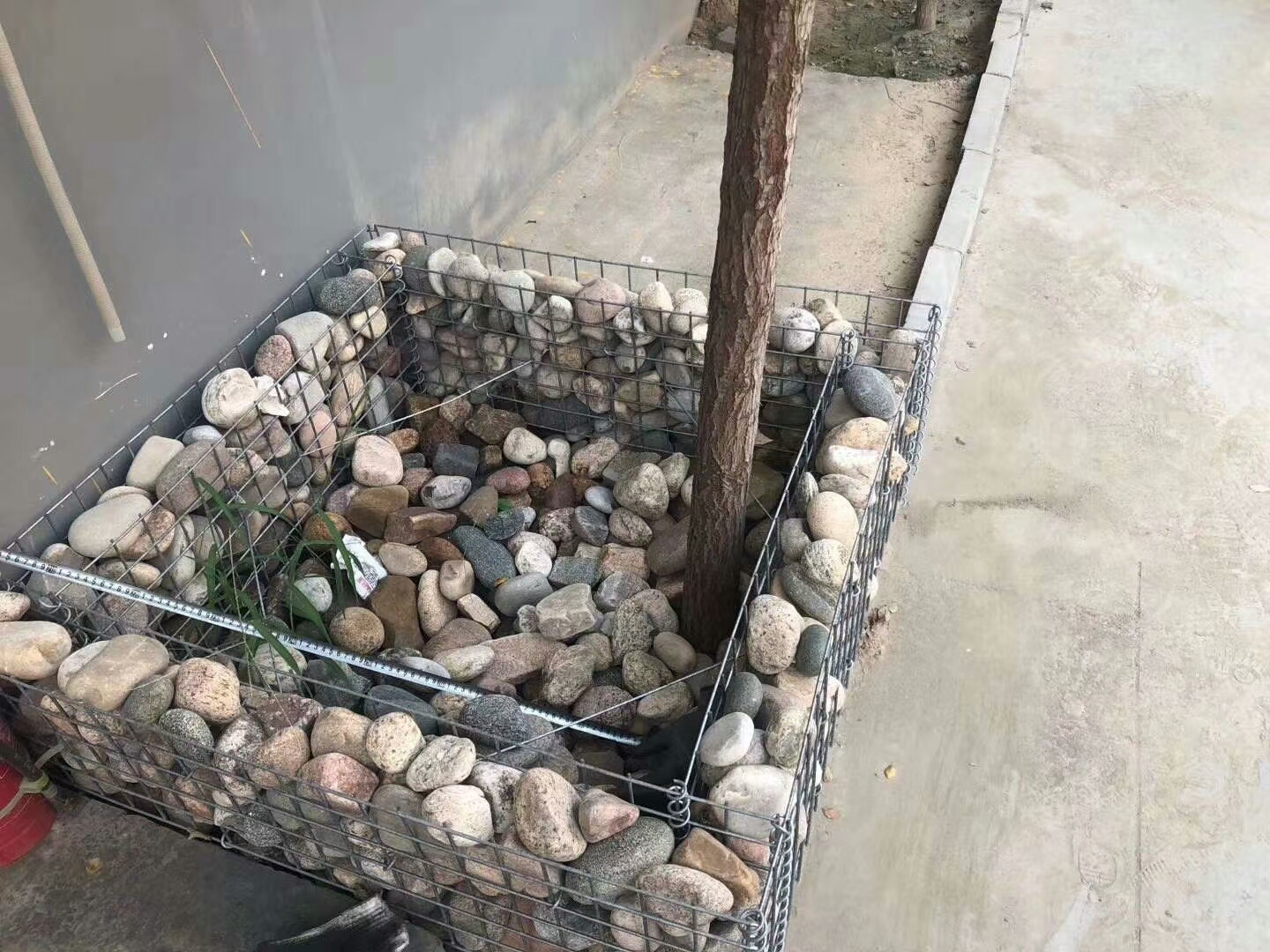 1取出一個完整的格賓單元,校正彎曲變形的部分,可用鉗子拉和腳踩整平。