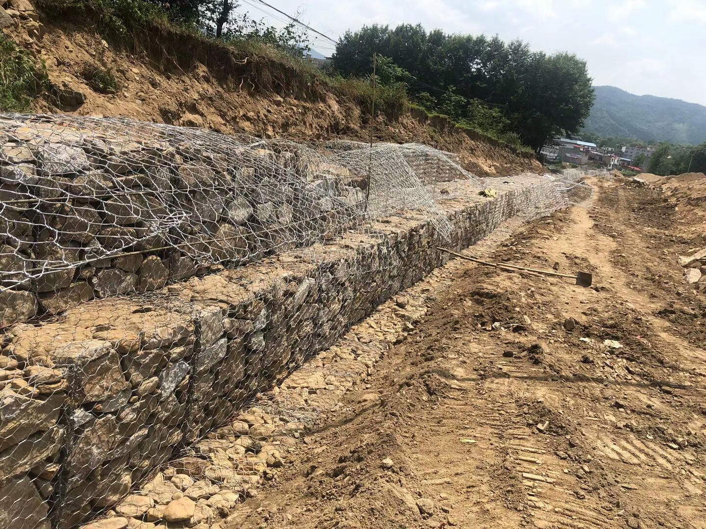 固濱籠是由高抗腐蝕、高強(qiáng)度、具有延展性的低碳鋼絲或許包覆PVC的以上鋼絲運(yùn)用機(jī)械織造而成,依據(jù)ASTM A 975和EN10223規(guī)范,所運(yùn)用的低碳鋼絲直徑依據(jù)工程設(shè)計(jì)需求而不一樣。通常介于2.0-4.0mm之間,鋼絲的抗拉強(qiáng)度不少于38kg/m2,金屬鍍層分量通常高于245g/m2格賓網(wǎng)片的邊際線直徑通常要大于網(wǎng)線直徑。其雙線絞合有些的長(zhǎng)度不得小于50mm.以確保絞合有些鋼絲的金屬鍍層和PVC鍍層不受損壞。