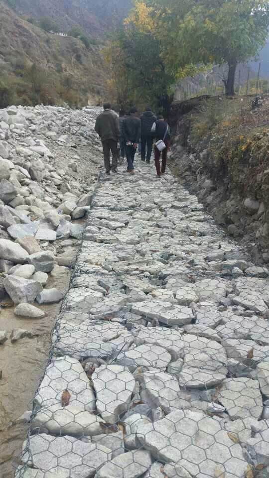 雷諾護(hù)墊是厚度在0.17-0.3m的網(wǎng)箱結(jié)構(gòu),在現(xiàn)場(chǎng)用于裝填石頭。主要用作河道、岸坡、路基邊坡護(hù)坡結(jié)構(gòu)。既可防止河岸遭水流、風(fēng)浪侵襲而破壞,又實(shí)現(xiàn)了水體與坡下土體間的自然對(duì)流交換功能,達(dá)到生態(tài)平衡。坡上植綠可增添景觀、綠化效果。
