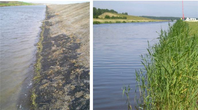 4、可實(shí)施植被綠化,人工鋪設(shè)的土層或土壤在加筋麥克墊工程填充料間的間隙中自然沉積,為綠化植被創(chuàng)造了生存環(huán)境,無(wú)需撒種,植物也會(huì)在沉積的泥土中自然長(zhǎng)出。自然生長(zhǎng)的植物抗逆性強(qiáng),適應(yīng)當(dāng)?shù)貧夂虻乩砩L(zhǎng)條件,能夠長(zhǎng)時(shí)間維持水邊的植被環(huán)境,實(shí)現(xiàn)優(yōu)化、美化環(huán)境、改善生態(tài)環(huán)境