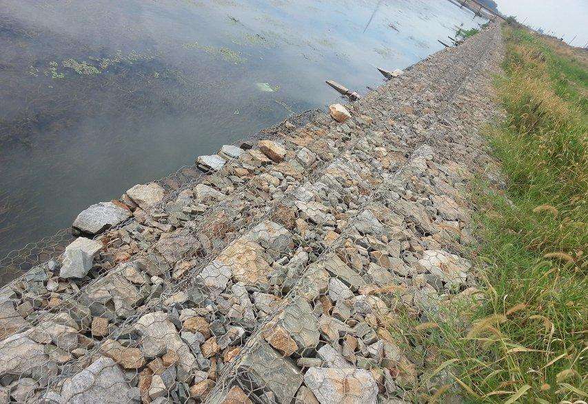 雷諾護(hù)墊是指由機(jī)編雙絞合六邊形金屬網(wǎng)面構(gòu)成的厚度遠(yuǎn)小于長度和寬度的墊形工程構(gòu)件,其中裝入塊石等填充料后連接成一體,成為主要用于水利堤防、岸坡、海曼等的防沖刷結(jié)構(gòu),具有柔性、對地基適應(yīng)性的優(yōu)點。