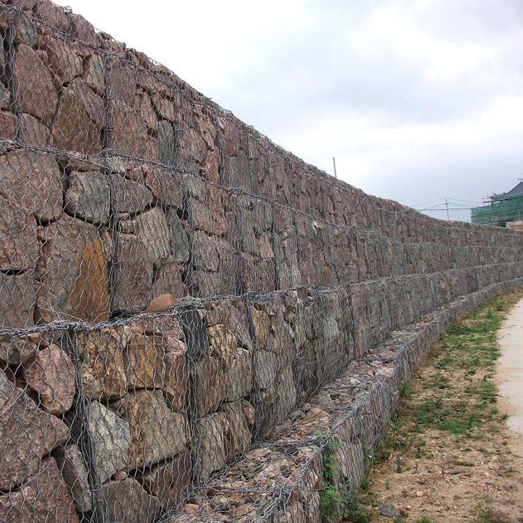 石籠網(wǎng)箱在施工現(xiàn)場(chǎng)經(jīng)石頭填充,構(gòu)成具有柔性、透水性及整體性的結(jié)構(gòu), 如擋墻、河道襯砌、堰等支擋的防沖蝕工程。