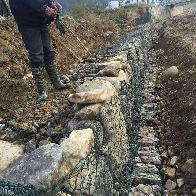 鋅鋁合金格賓石籠擋土墻做山坡護(hù)腳效果
