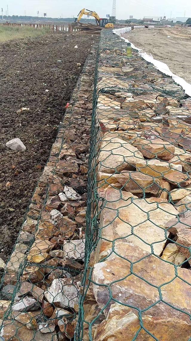 石籠網(wǎng)箱在施工現(xiàn)場(chǎng)經(jīng)石頭填充,構(gòu)成具有柔性、透水性及整體性的結(jié)構(gòu), 如擋墻、河道襯砌、堰等支擋的防沖蝕工程。