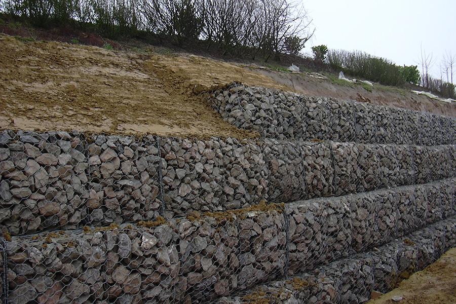河道襯砌鉛絲籠擋墻石料質(zhì)量和級配控制