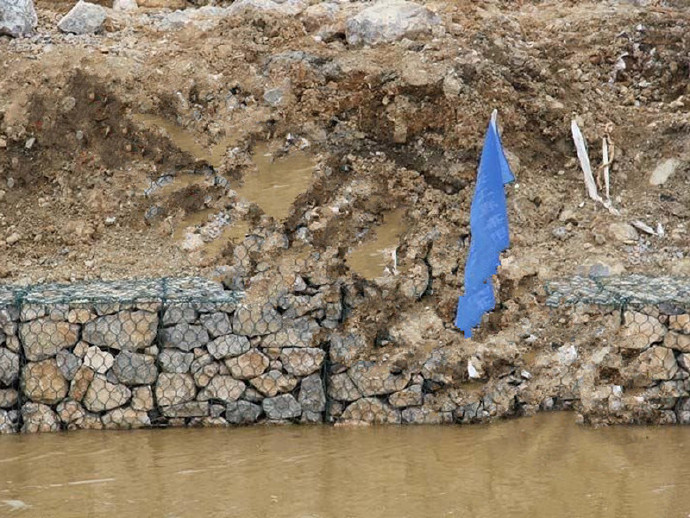 3、封蓋:封蓋時頂部石科必須砌壘平整,先固定每端相鄰邊節(jié)點后再綁扎,封蓋與網(wǎng)箱邊框相交線處每隔l0-15cm綁扎一道。毎層格賓網(wǎng)箱填石完成應(yīng)擇點測量標高,達到設(shè)計要求。