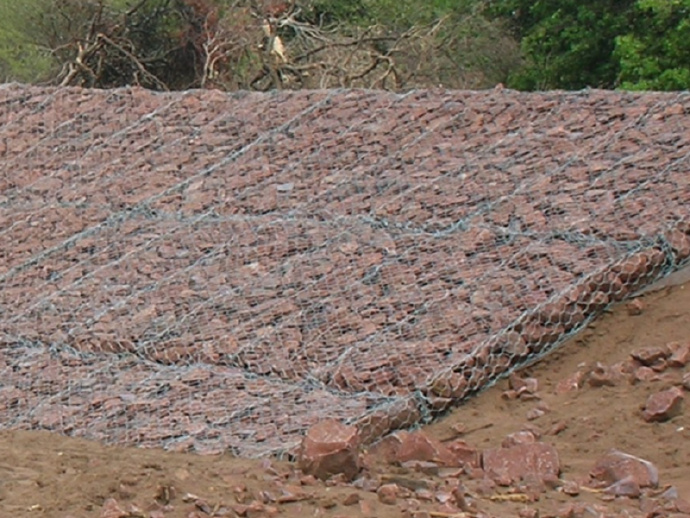 石籠網(wǎng)可用于邊坡支護(hù)、基坑支護(hù)、山體巖面掛網(wǎng)噴漿,石籠網(wǎng)箱、邊坡植生(綠化)、鐵路高速公路隔離護(hù)攔網(wǎng),它還能制成箱籠、網(wǎng)墊,用于江河、堤壩及海塘的防沖刷保護(hù),水庫、河流截流用網(wǎng)箱。河流最嚴(yán)重的災(zāi)害是水流沖刷河岸使其破壞,引發(fā)的洪水泛濫,導(dǎo)致生命財(cái)產(chǎn)遭受大量損失和大量水土流失。因此在處理上述問題時(shí)侯,格該生態(tài)格網(wǎng)結(jié)構(gòu)的應(yīng)用成為最佳的解決方案之一,它能使河床河岸得到永久性保護(hù)。